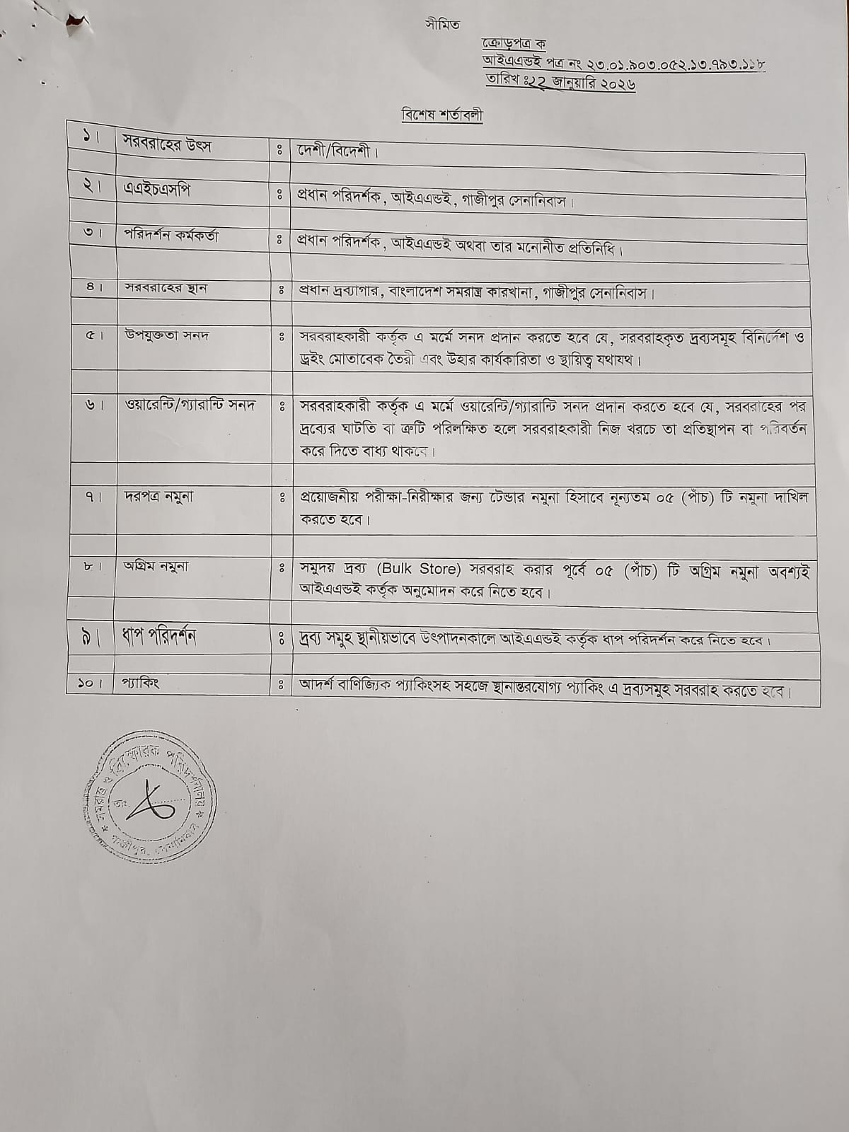 4 | 23.27.0000.166.218. 3256105.25.26 Dt. 25-02-26 | MS Checker Sheet and Other 9 Types of Item (Total 10 Types of Item) | 07-04-26 | 08-04-26 | Local | 750.00 | Group-A Group-B Any Country | 📎 218.25.26.pdf |
