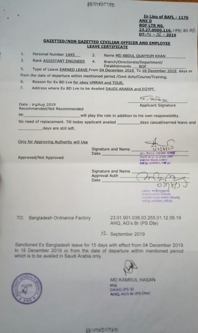 | 48 | ব্যক্তিগত নম্বর- ১১১৯৫, সিনিয়র টেকনিশিয়ান, আবু আনসার | 27.07.2024 | |